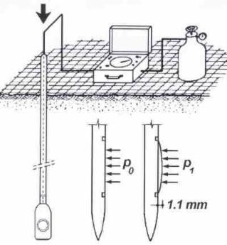 Consiste en la hinca de una paleta plana de acero inoxidable provista de una membrana circular expandible horizontalmente mediante gas a presión. La hinca de la paleta se realiza mediante un penetrometro estática y varillaje hueco a través del cual discurre el cable que une la centralita y la paleta.